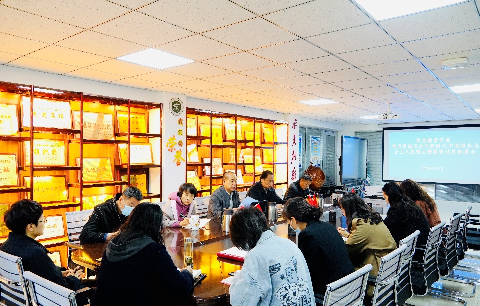 4月24日上午,终身教育学部召开学习贯彻习近平新时代中国特色社会主义思想主题教育动员部署会,学部班子成员、全体教职工参加会议。会议由学部党总支书记冯奎主持。