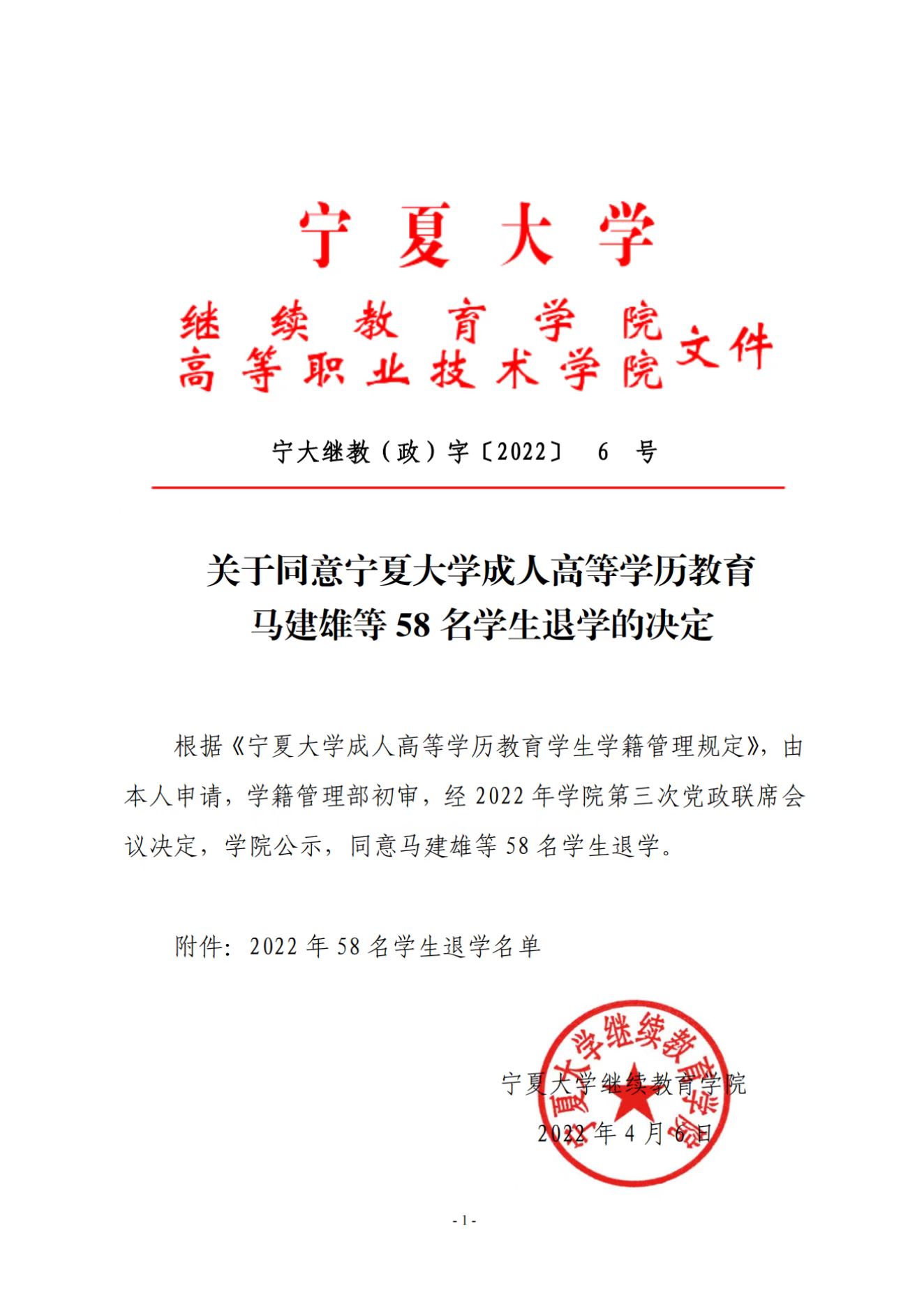 关于同意开云全站成人高等学历教育马建雄等58名员工退学的决定