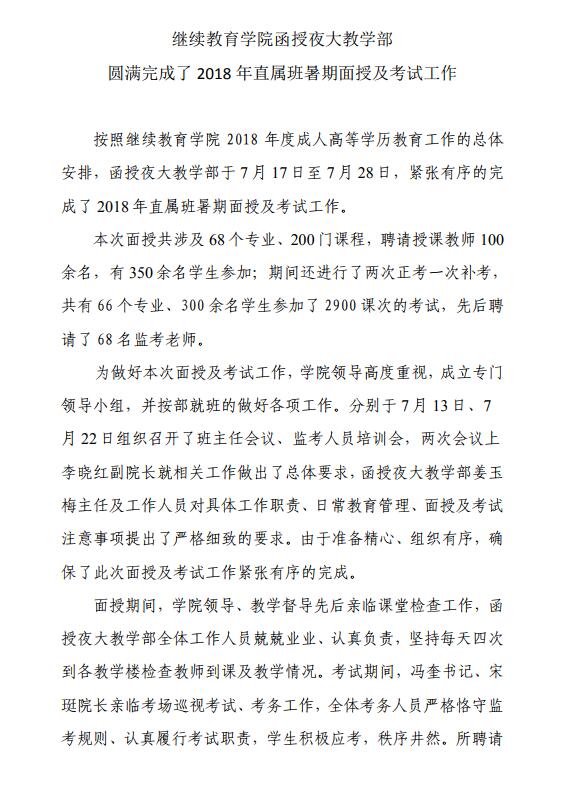 开云函授夜大教学部圆满完成了2018年直属班暑期面授及考试工作