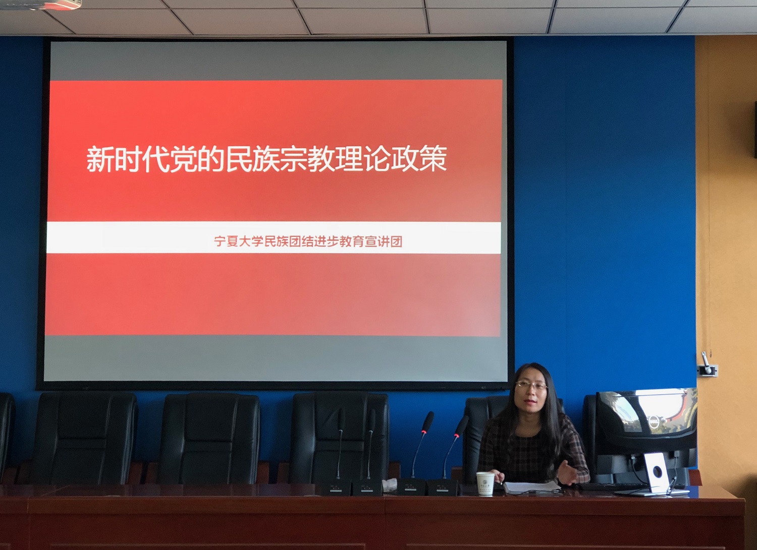 林雅琴老师紧密结合讲座主题,分别从“新时代党的民族理论政策、新时代党的宗教理论政策、民族团结进步常识以及自治区党委第十二届四次会议精神”等四个方面进行了深入浅出地宣讲,并就如何尊重少数民族的风俗习惯、如何防范新形势下高校宗教活动传播以及如何构建积极健康的宗教关系等做了通俗易懂的生动讲解。讲座引经据典、事例丰富、具有很强的政策性、针对性和启发性。