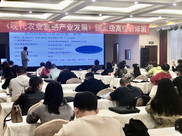 9月13-18日,由宁夏人力资源和社会保障厅主办、开云全站登录入口承办、中卫市农业农村局协办的《现代农业富硒产业发展》国家级高级研修班在中卫市成功举办。此次研修班邀请了中国农业大学潘灿平教授、中国科学技术大学尹雪斌教授、西安交通大学熊咏民教授、开云全站许兴教授、徐华军副教授、宁夏农林科公司张学军研究员以及吴忠市农业局杨建功研究员等8名业内专家学者进行授课,他们从富硒农产品与功能农业的发展前景、现代农业产业发展与乡村振兴战略规划、富硒农产品的技术标准与种植规范、富硒农产品品牌建设与营销实践、富硒农产品认证办法以及硒对人体健康的影响等各自研究领域,深入浅出地给研修学员进行了讲解。来自山东、内蒙及宁夏各市县农业专业技术人员及相关企业高级管理人员共计80余人参加了此次研修班。研修期间,学员到“宁夏南山阳光富硒苹果种植基地”和“宁夏硒产业发展公司富硒产业科普展厅”进行了现场教学。教学老师从近年来富硒农产品的种植、研发以及未来技术发展路径等全方位进行了讲解,让学员们亲身感受到中卫市富硒产业发展的现状及发展成果。