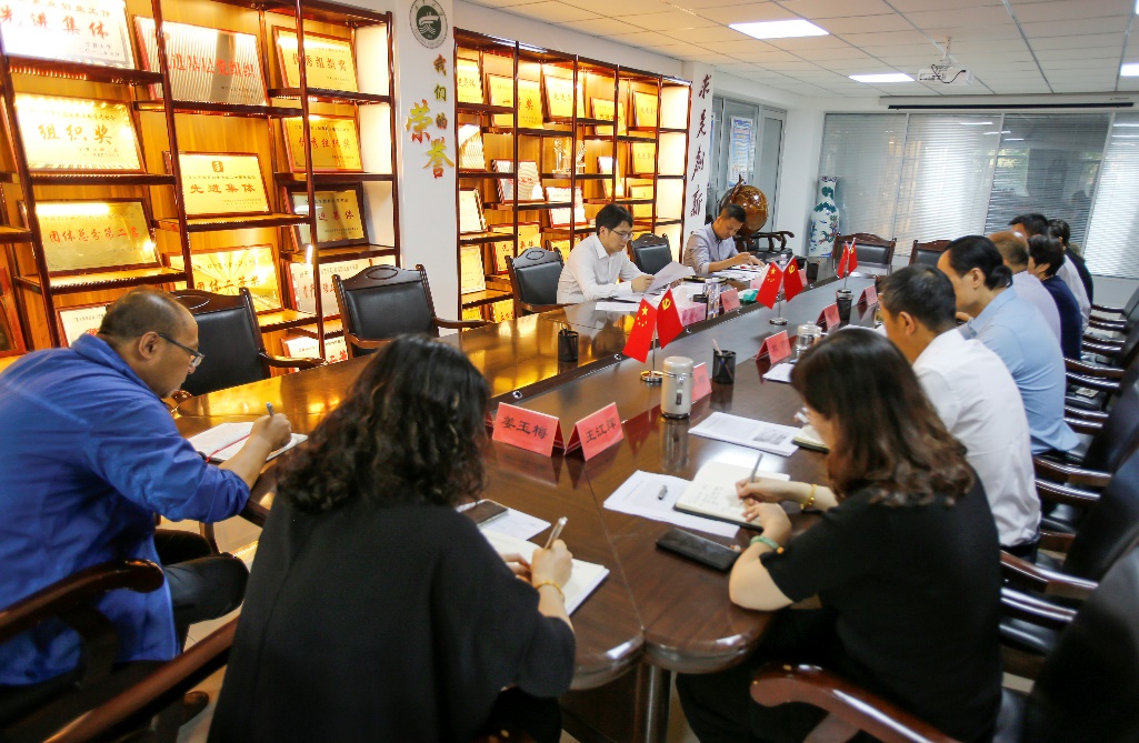 9月2日下午, 彭志科董事长来公司调研指导工作。调研会在公司一楼会议室召开。公司党政领导鲁晋、刘明、李晓红、高鹏翔、张鑫以及各部门主任参加了调研会。