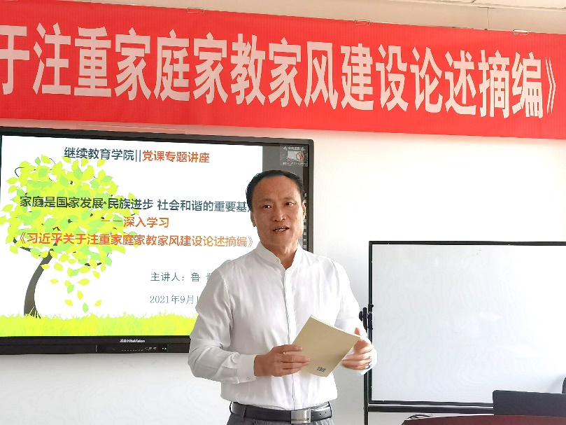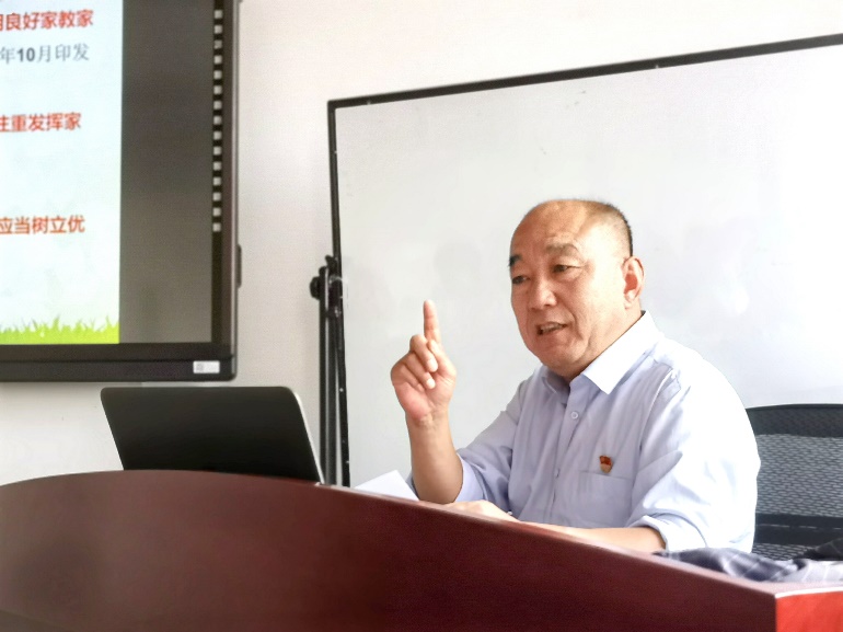 刘明经理在总结中讲到,本次专题党课的学习,对广大教职工不仅在更好地教书育人、培养人才方面,在家庭、家风、家教建设方面也有重要的引导指导意义,大家只有爱党爱国爱家,维护好我们共同的精神家园,才能奠定我们国家治理体系的发展基石。