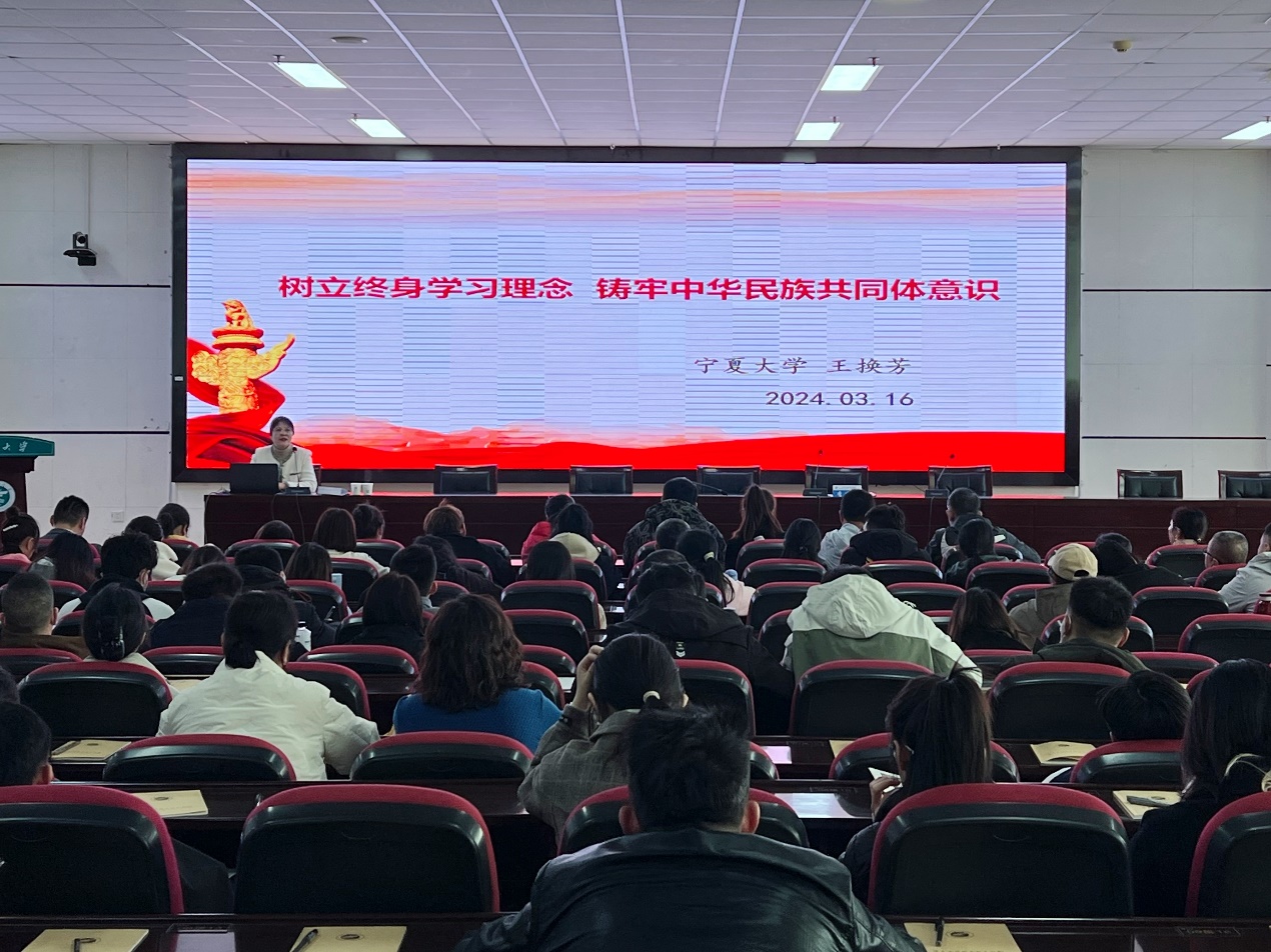 人力资源部副部长王换芳教授以《树立终身学习理念铸牢中华民族共同体意识》为题,为全体新生上了一堂生动精彩、内涵深刻的专题讲座,使员工们树立了终身学习理念,并切实将中华民族共同体意识根植于心灵深处。