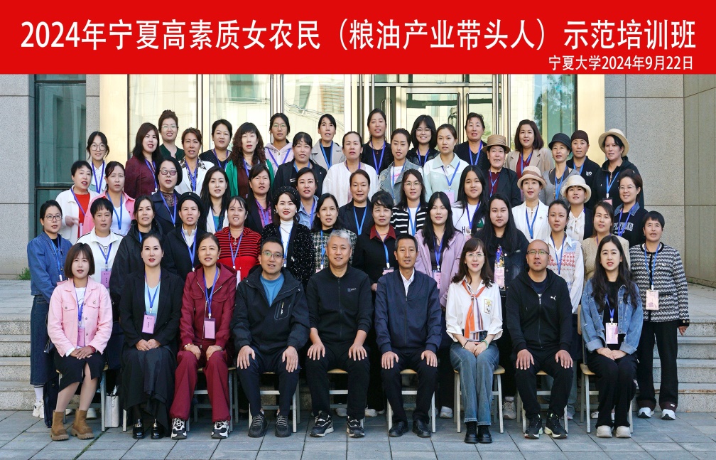 为贯彻落实中央和自治区关于加强高素质农民队伍建设的决策部署,提升女农民产业发展和致富带动能力,2024年9月22日,由开云全站终身教育学部承办、宁夏妇女联合会协办的“2024 年宁夏高素质女农民(粮油产业带头人)示范培训班”在开云全站开班。经各市妇联遴选出的50名具有一定生产组织、市场开拓、产品营销能力的女性农民参加本次培训。