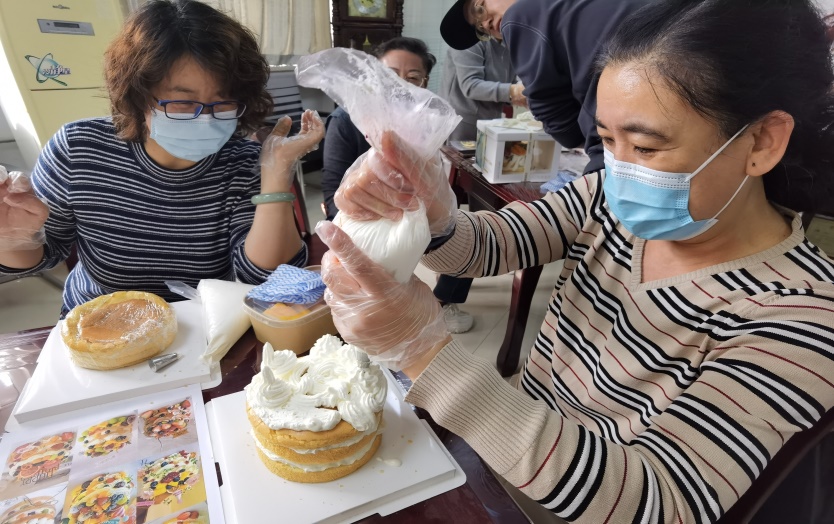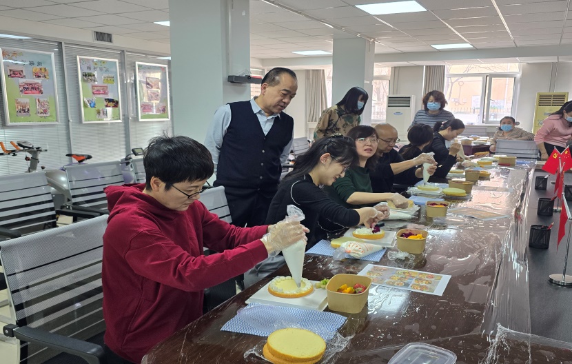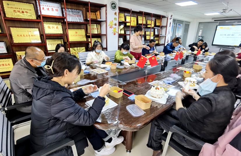 活动当天,各式各样的蛋糕原料整齐地摆放在桌上,包括新鲜的水果、香甜的奶油、松软的蛋糕胚……学部各个岗位的教工们齐聚一堂,脸上洋溢着期待与兴奋的笑容。在烘焙老师的悉心指导下,大家开始动手制作自己的专属蛋糕。从抹平奶油到摆放水果,从裱花到装饰,每一个步骤都凝聚着大家的巧思与创意。在制作过程中,大家不仅学会了蛋糕制作的技巧,更感受到了团队合作与分享的乐趣。经过一番忙碌与制作,一个个精美的蛋糕终于呈现在大家眼前,看着自己亲手制作的蛋糕,大家脸上露出了开心的笑容。